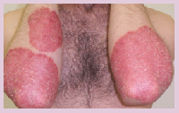 Es una enfermedad inflamatoria crónica, de causa desconocida, no contagiosa que se caracteriza por placas eritematoescamosas gruesas con escama blanca adherente, cuyas lesiones se pueden presentar en piel cabelluda, codos, rodillas región sacra, uñas y menos frecuentemente región palmoplantar. También hay una forma invertida donde las lesiones aparecen en axilas, genitales, y pliegues inguinales.